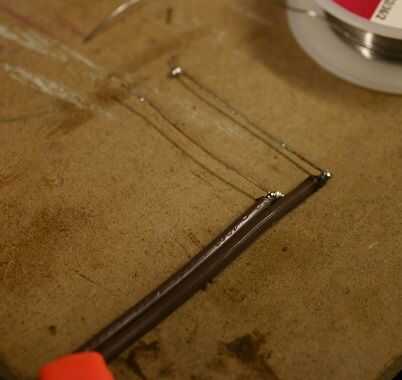 3. Conecte un par de cables totalmente despojado a los extremos de la cuerda, como barras de distribución.