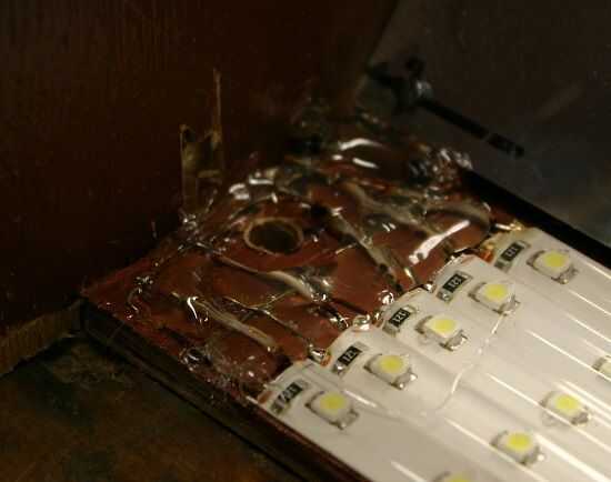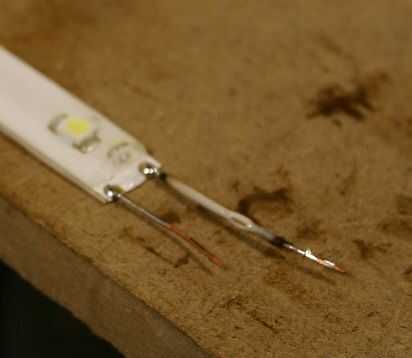 10. Las puntas de las tiras de LED a su barra de la soldadura.