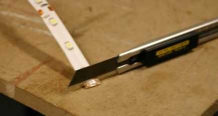 6. Cortar la tira de luz LED, bisecan los contactos de cobre para que tenga un par en cada extremo de las tiras.
