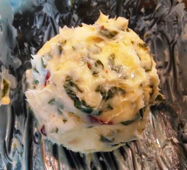 Compuesto de mantequilla y albahaca ajo (2 / 3 paso)