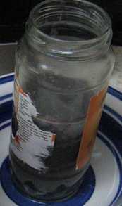 - Volcar el agua de la lejía tapa hacia fuera, dejar el fondo intacto.