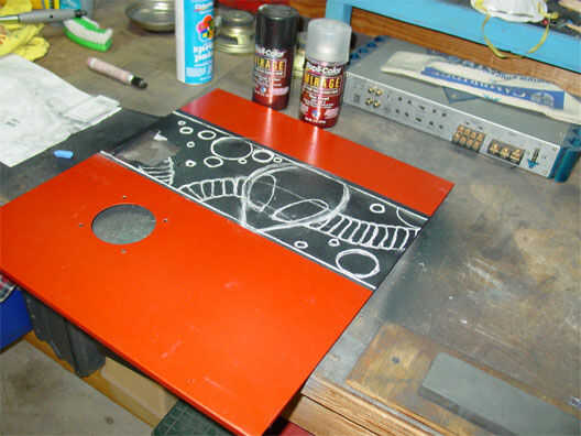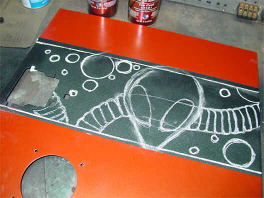 Usé el prisma tiza (tiza de un arte suave) para marcar todos los diseños en la pintura plana antes de empezar a grabar...