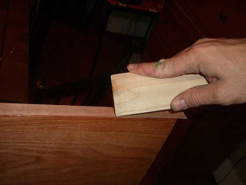 Después de que hice esto, apliqué una capa más de tinte y polietileno, esta vez aplicándola a la tira de borde de madera que coloqué sólo en.