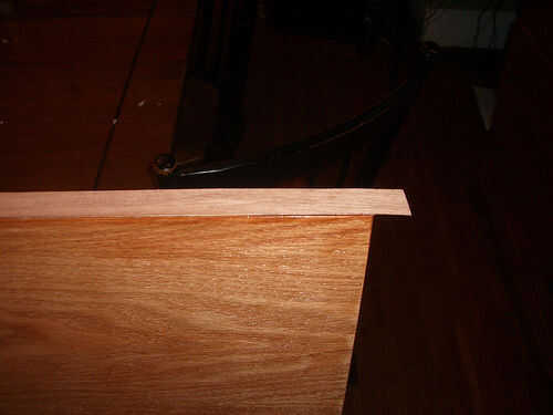 Formato de mis piezas ya que el borde de sí mismo: Así que línea un borde y la licencia de algunos colgando del otro lado. Yo Presione la plancha a la tira en el borde y recorren lentamente (esto es en las instrucciones sobre el desmontaje de borde). Entonces corrí a un bloque de madera sobre la banda para asegurarse de que era completamente lisa. Entonces utilicé el cortador de la caja a muy cuidadosamente y exactamente el corte del extra. Yo entonces enarenó ligeramente el borde por lo que fue una buena transición de borde a borde.