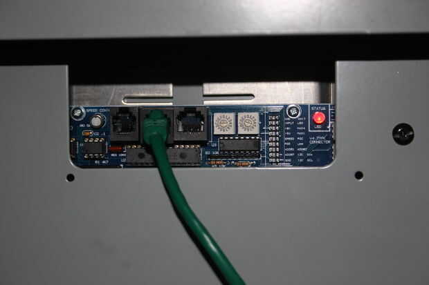 Utilizando el CD que viene con el controlador (o descargando los controladores desde el sitio web), siga las instrucciones para instalar el software en su PC. Una vez que esté completo, empezar quitando los tornillos de la parte delantera del controlador y retire la placa frontal. Ejecute el cable de red a través del orificio en la parte inferior y enchufe en uno de los conectores de red. También, si tienes más de un controlador, debe establecer el número de controlador desde el interior de la unidad. Tome nota de este número porque lo necesitarás más adelante. Debe ser 0, 1 por defecto. Enchufa la energía para el controlador. Este modelo en particular tiene dieciséis canales, ocho en cada lado, así que tendrá dos enchufes para conectar. Conecte la alimentación. Deberá conectarse el cable de red el adaptador USB y el adaptador USB a su ordenador con el cable USB incluido.