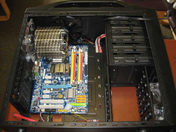 Este caso tiene un corte para el acceso a la parte posterior de la placa base para los refrigeradores de la CPU masivos que tienen soportes que se adhieren a la parte posterior de la Junta.