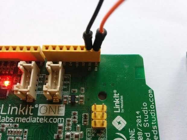 Todas las conexiones que tienes que hacer es conectar el pin TX del arduino al pin RX de Linkit uno, conectar el pin Rx del arduino al pin TX del Linkit. Y también conectan los terminales de tierra.