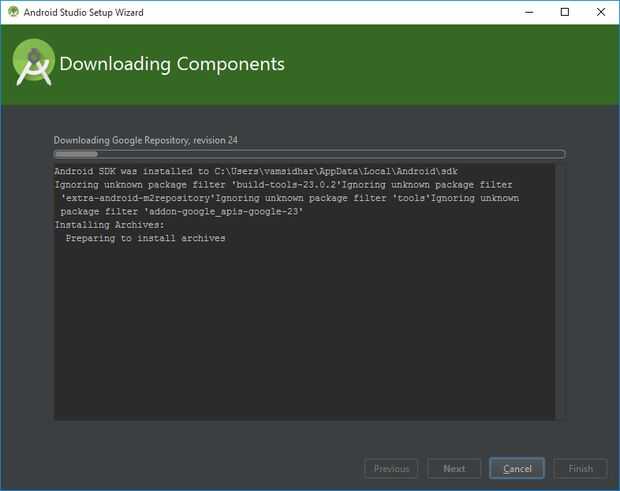 Al final se instalará versión SDK más reciente automáticamente, deje que se complete.