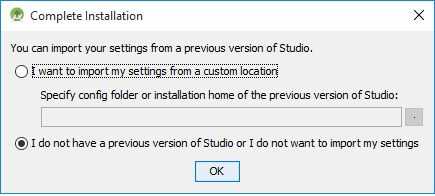 Finalmente usted debe conseguir la pantalla de bienvenida para estudio de android.