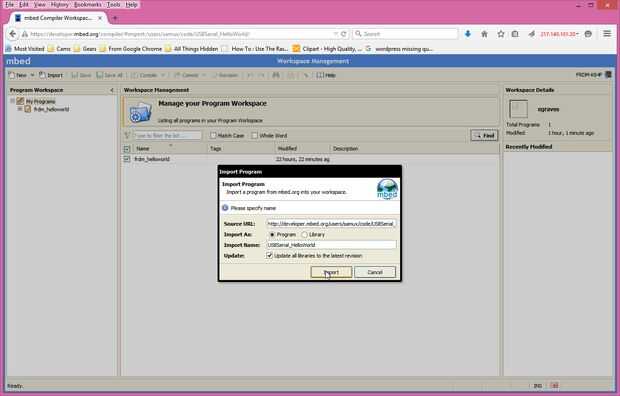 Seleccione "Actualizar las librerías a la última revisión" y haga clic en "Importar"