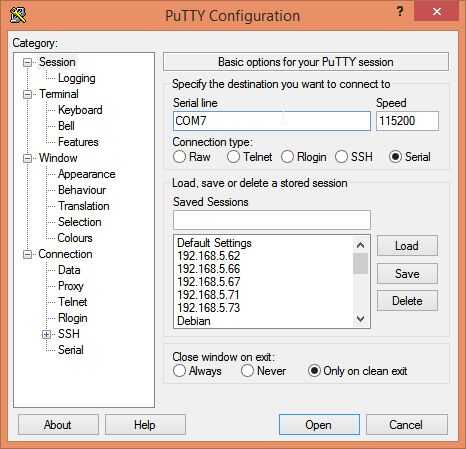 Necesitamos un programa de terminal para hablar sobre el puerto serie. Utilizar masilla para SSH, es un buen programa de terminal para este caso también.