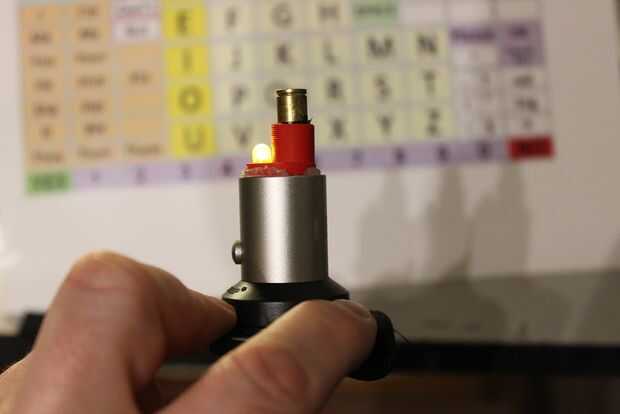 3) opcionalmente un LED normal. Esto recuerda el laser es por lo que no olvide apagarlo después de su uso personal. No va a trabajar con la batería descargada, por lo que hace este "poder-en-recordatorio" brillante!
