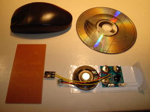 un módulo de grabación de sonido pequeño (por ejemplo, el tipo usado para el producto de tarjetas de felicitación 191184 ID. en Conrad);