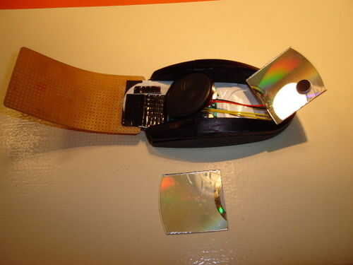 También puede continuar en el exterior y hacer a algún tipo de aluminio los bordes "debe" se puede ver en el comunicador original de TOS. Como la mayoría órganos de ratón tienen línea de partición que no permiten una real "midplate" acaba de hacer los bordes. Primero pensé en cortar tiras desde un CD-ROM, pero que era muy difícil, ciertamente difícil para los niños más pequeños. En su lugar utilizo un alambre de aluminio. Tuve la suerte de encontrar algún alambre de aluminio aplanado, que da un aspecto más realista, pero otro alambre suave funcionará también. En extremo, doblar por lo menos un cm en un ángulo del cuerpo del comunicador. Y pegar al lado de la bisagra. Dependiendo del tipo de ratón usted puede caber un poco en la ranura formada por la Unión de las partes del cuerpo. Cuando el pegamento ha fijado (un poco de pegamento o superglue son buenos para eso), doble suavemente el cable a lo largo del cuerpo del comunicador. En el centro pegamento en la ranura otra vez. Mantener en su lugar (con la cinta por ejemplo) hasta que el pegamento ha fijado y continuar a la otra esquina estaban puede dobla y corta el alambre con los alicates para hacerla encajar y encolar en su lugar. Terminado!