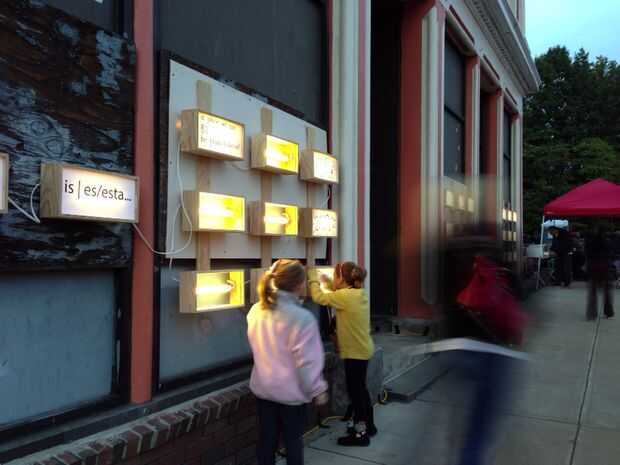 Estas cajas de luz fueron creados para una comunidad "emergentes" en Holyoke, MA. Instalado durante el día y cayó la noche, la gente escribió sus pensamientos y sueños de su ciudad en el rostro translúcido de las cajas, entonces enciende la luz interior.