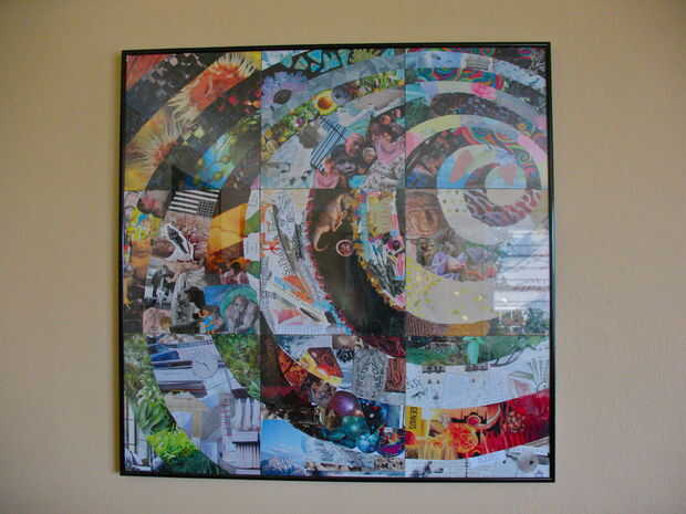 Hay nueve paneles 12 "x 12" en el que cada individuo tendrá que creativamente collage. Los paneles se forman una imagen más grande utilizando patrones de oscuros y claros. El patrón que se muestra te es un patrón de anillo pero se puede hacer cualquier patrón que desea.