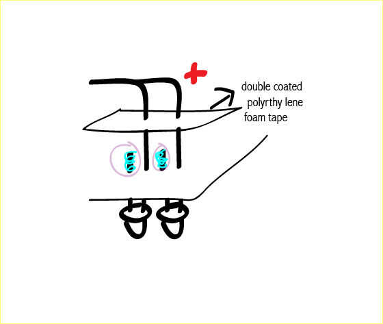다리를 이어 줄때는 또 한번 합선을 막기 위해 양면 폼 테이프를 이용합니다. (그림 2)