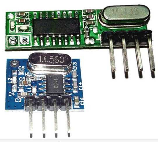 Receptores y transmisores de 433 MHz generalmente vienen en un par y están disponibles para alrededor de 1 euro por par en las webshops chino varios. Los transmisores son realmente bastante decentes, pero los receptores son una mierda. Trabajo y puede ser utilizados pero no esperes milagros. Como la mayoría de la gente está interesada en el control de los dispositivos de sus mirocontroller sobre todo solamente utilizarán el transmisor, así que la calidad del módulo receptor no es importante, pero si usted quiere recibir datos de decir un weatherstation, querrá invertir 1 o 2 euros más y comprar un receptor de cristal conducido.