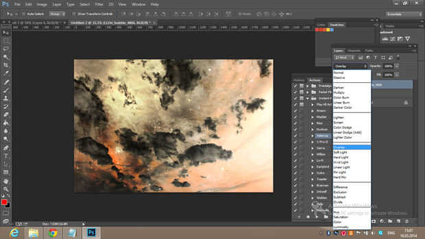 Cambiar el modo de fusión de capa de espacio "superponer".