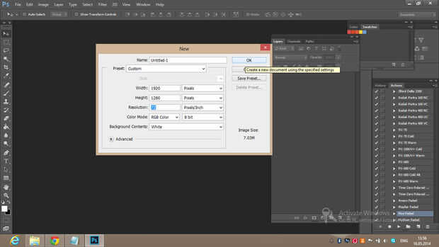 Abrir photoshop, nuevo documento (1920 x 1280 px, 72 dpi)
