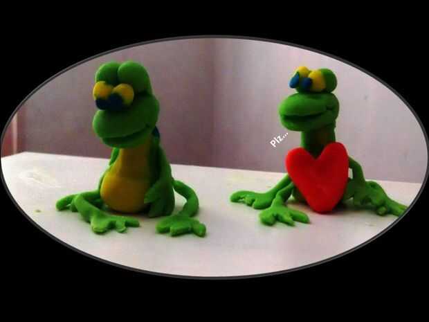 Voy a hacer una rana simple con arcilla polimérica (verde, amarillo, rojo y azul).