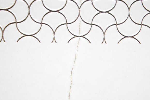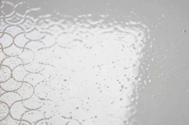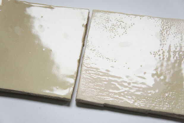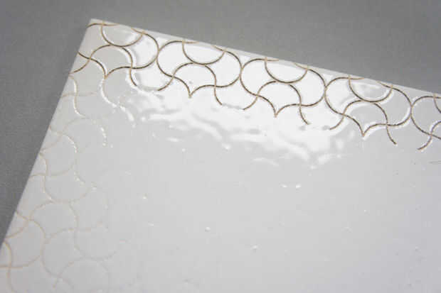 Las fichas en los cuatro últimos cuadros son rociadas con esmalte, luego lasercutted y luego al horno.
