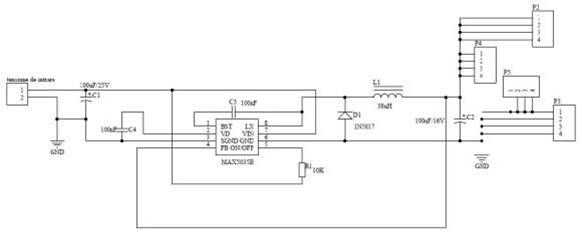Este módulo es un convertidor buck de alta eficiencia para reducir el voltaje a 16V (batería) requiere 5V fuente de lógica todas las piezas del chasis. Está diseñado con circuito integrado MAX5035B y es capaz de una corriente de 1A. El módulo está construido con componentes SMD.