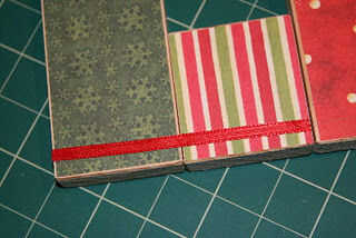 Aplica el pegamento y la cinta en los dos primeros bloques en una tira larga. He utilizado pegamento caliente porque no tengo tiempo para dejar que se seque el pegamento blanco. Esta cinta es parte de la bisagra para el frente. Al hacer esto, tenga cuidado de no bajar el pegamento en la grieta entre los tableros o sus bloques se se pegan demasiado (aunque este proyecto se puede hacer sin bisagras y resulta muy lindo demasiado.)