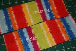Entonces que comenzó a preparar los sombreros. Me decidí a poner los nombres en la banda de los sombreros. Usé una máquina de bordado y había hecha de paño grueso y suave, pero podrían utilizarse otras opciones. Creo que los nombres de agregar un toque personalizado al proyecto final.