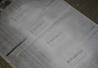 También se aplica una ligera capa de pintura blanca en aerosol a las bisagras. Tenga cuidado de no aplicar demasiado espesor de una capa o interfiera con la funcionalidad de la articulación.