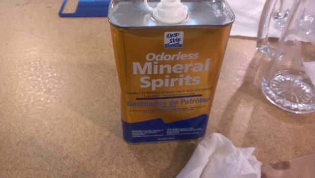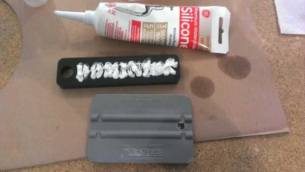 Entonces tomé al bruñidor gris que se utiliza para la fabricación de la muestra del vinilo y utilizado como una escobilla de goma. Que sólo a medias. Ahora estaba manchada y que tenía que intentar bajar el residuo sin fundir el acrílico o arañarlo.