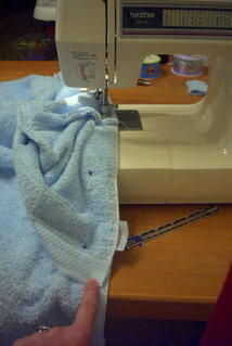 Con costura de 5/8 de pulgada, puntada recta capucha a la toalla (esta costura cogerá el exceso de cinta).