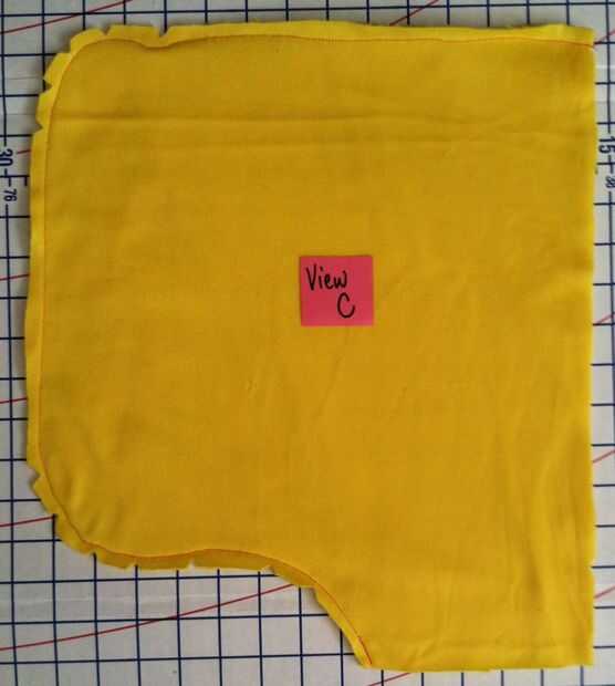 Tomar cada pieza de campana y combinar con derecho (fuzzy) lados juntos; PIN (vista A). Coser a lo largo de la parte superior y trasera de la capota, de frente a la base del cuello, con margen de costura de 1/2"(vista B). Recortar el margen de costura a 1/4", haciendo muescas en las curvas y planos abiertos (vista C). Perno de la cinta sobre el centro de la costura, cubriendo los bordes crudos (vista D). Coser la cinta a campana a lo largo de ambos bordes laterales, tan cerca del interior borde de la cinta de opciones como sea posible (ver E).