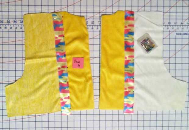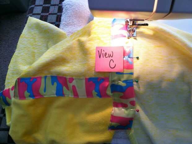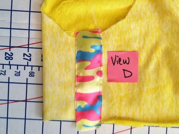 Repita este proceso con las costuras laterales de blusa (vista D).