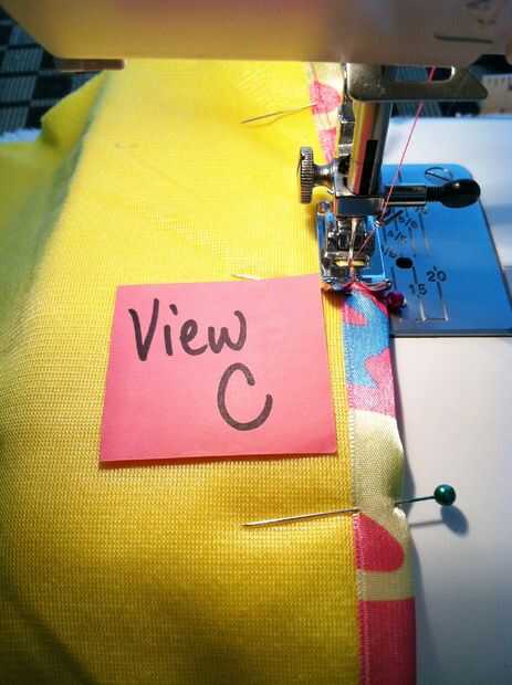 Tomar una de sus piezas de cuerpo de manga y doblar por la mitad verticalmente con derecho lados juntos; perno en los bordes y coser la costura con el margen de costura de 1/2"(vista A). Recortar el margen de costura a 1/4", luego prender la cinta doblada longitudinalmente alrededor de costura (vista B). Coser cinta abajo bien tan cerca de la costura existente como sea posible mientras que todavía encierra los bordes crudos (vista C). Repita para el segundo cuerpo de la manga.