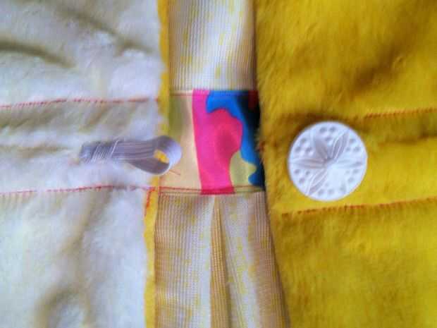 Último paso! Yo había originalmente planeaba utilizar un broche de metal para cerrar la chaqueta, pero le preocupaba que no permanecen cerrado, así que decidí utilizar un botón grande y un lazo de elástico en su lugar.
