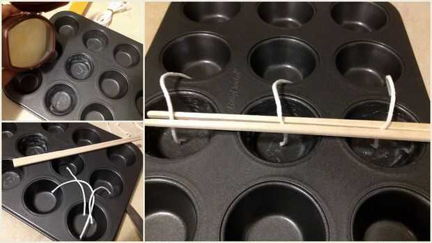 2. Corte una longitud de mecha que es de aproximadamente 3 pulgadas de largo. Coloque la mecha entre los palillos y colocar sobre el centro de la cacerola del mollete.