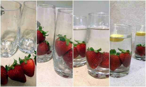 1. Coloque la fresa dentro del vidrio y llenar el vaso con agua.