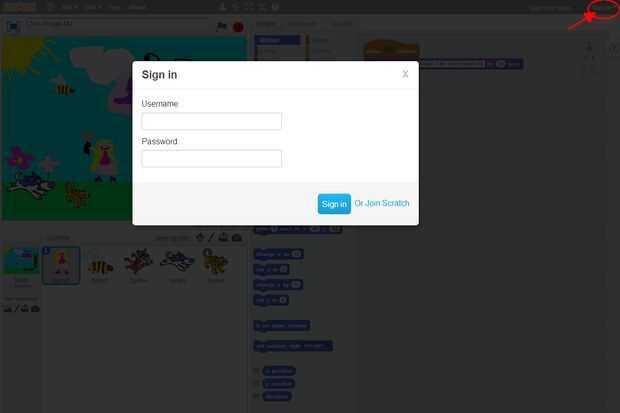 - Sesión para el alumno y luego tenerlos guarde su proyecto y firmar tan pronto como se guarda y se comparte su proyecto o