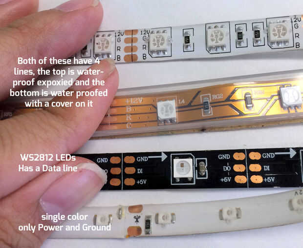 Si usted tiene 3 entradas, probablemente tienes una tira de WS2811/WS812 (LEDs direccionables).