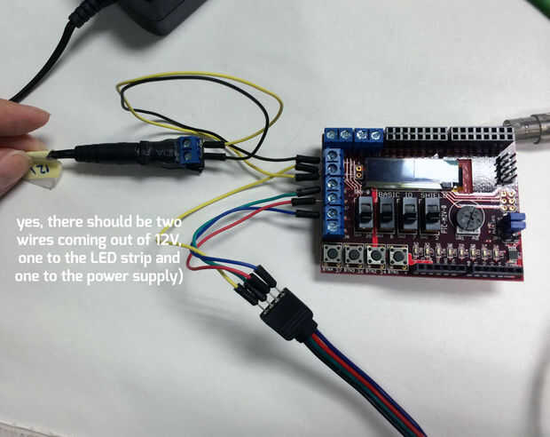 Necesitamos añadir 12 v + y GND a la pletina de E/S para los LEDs de potencia.