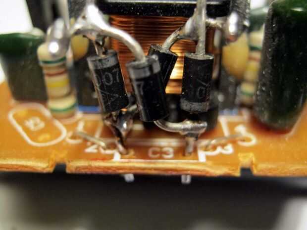 De la soldadura ahora el puente rectificador a la placa de circuito de donde sacar el filamento que une el condensador