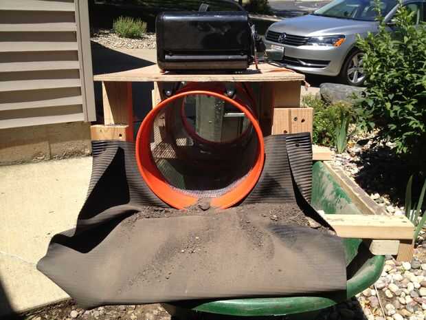 Necesitaba instalar un drenaje francés para redirigir la lluvia desde el frente de mi casa. El problema era que mi casa está rodeada de camas de la roca! Terminé construyendo una criba con carretilla para salvarme de separar la roca del río de la tierra buena a mano. La criba será también muy útil para conseguir todas esas molestas rocas del jardín de mi esposa. El lo más novedoso es que la criba se sienta encima de mi barril de la rueda para que la suciedad se distribuye justo en la carretilla para el transporte fácil. Oh, y yo lo menos 90.00.