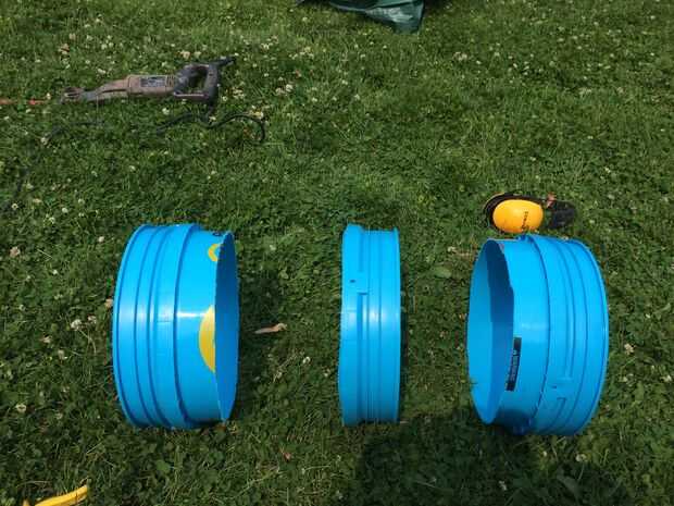 - Corte el tercer cubo justo debajo de la parte inferior más canal. Utilice éste para el centro del tambor.