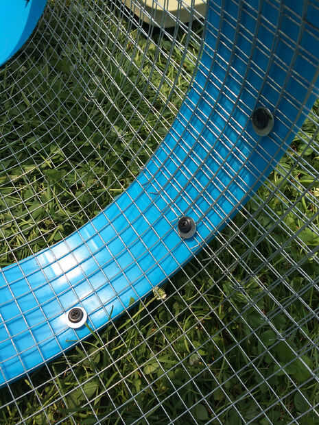 - A partir de los bordes del cubo exterior, atornille el cercado hasta el interior de la primera llanta.