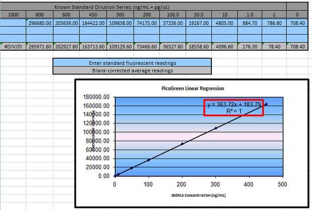 b. cualquier r ^ 2 valor por debajo de 0,99 es inaceptable y normas deben ser rehecho (ir hacia la Creación de estándares de dilución de ADN )