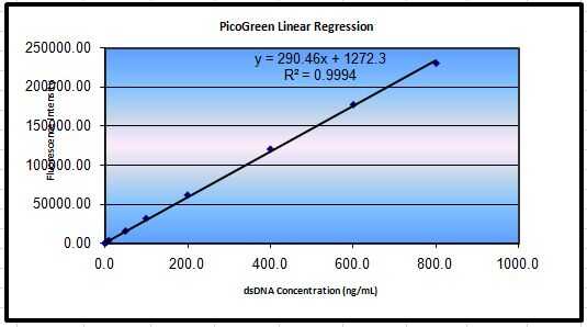 1. si el R ^ 2 valor es aceptable, leer las 50 muestras (incluyendo sus duplicados) en el fluorómetro y registre el valor de la libreta de laboratorio