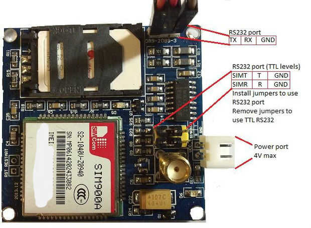 Tenga en cuenta que aunque he investigado mi módulo, parece haber muchas versiones del mini módulo y lo dejo a usted para experimentar y trabajar los detalles de su versión por sí mismo - es bastante fácil. También tenga en cuenta que el mismo módulo de tablero de PC admite el Sim900 o el chip de Sim900A y se utilizan de manera similar, por lo que supongo un Sim900.