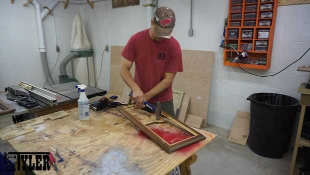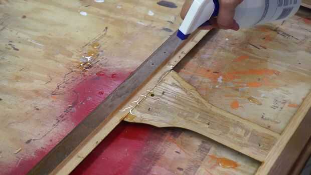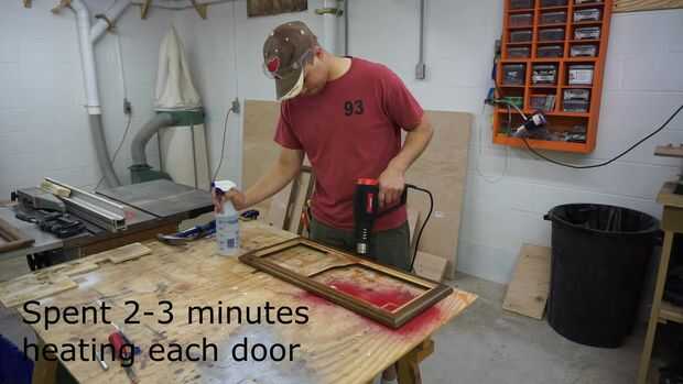 Ahora que se quita el panel de la puerta es hora de deshacerse de la sección transversal. Para hacer esto con un daño mínimo a la fama utilicé una pistola de calor y agua para disolver el pegamento. Calienta cada puerta durante 2-3 minutos, rociando con agua que evapora. Después de calentarlos ligeramente golpeada con un martillo y los travesaños de vinieron!
