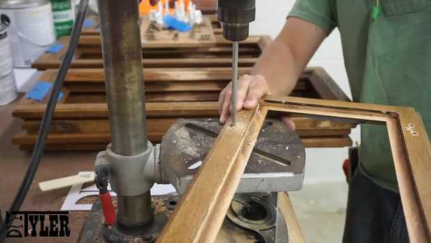 Para dar cabida a la nueva tira de hardware planeamos instalar necesitaba perforar y avellanar unos nuevos agujeros en los marcos de las puertas. Para hacer todos los agujeros constantes hice un verdadero rápido taladro Guía plantilla utilizando algunos pequeños trozos de madera contrachapada.
